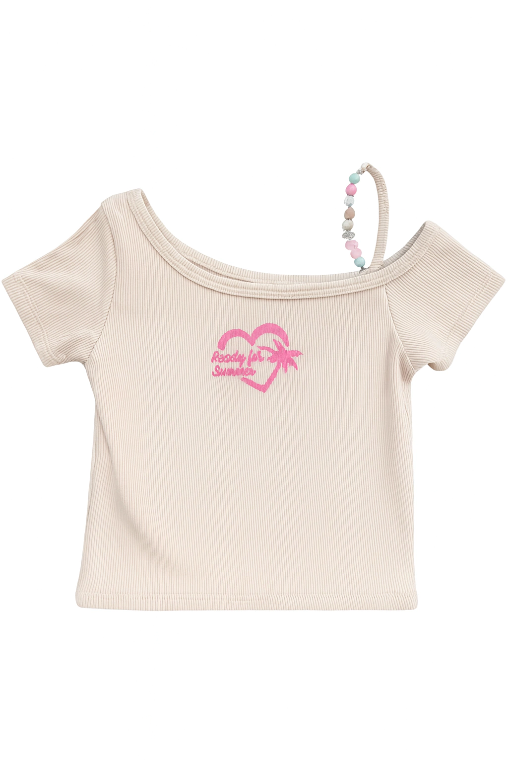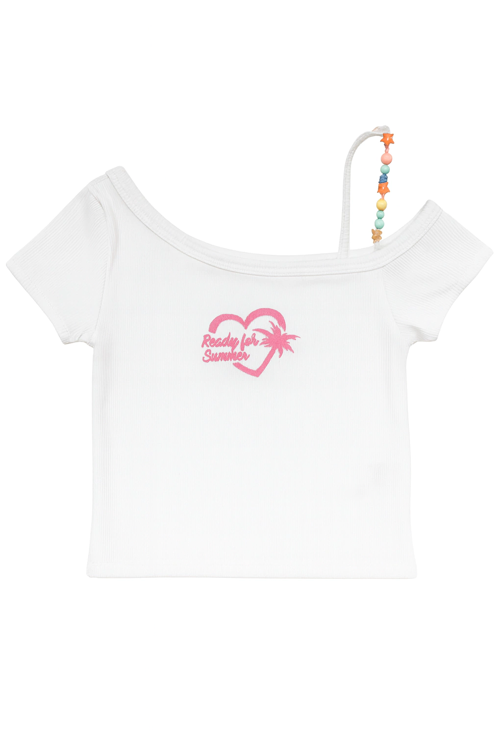 Remera Mostacillas: el must have del verano para niñas. Esta remera de morley destaca por su escote irregular y un delicado bretel de mostacillas, que aporta un toque de originalidad y sofisticación. Su diseño liviano y cómodo la convierte en la prenda ideal para los días cálidos, mientras que su versatilidad permite combinarla con cualquier look. Perfecta para que tu niña disfrute con estilo y frescura. ¡Un básico imprescindible para esta temporada!